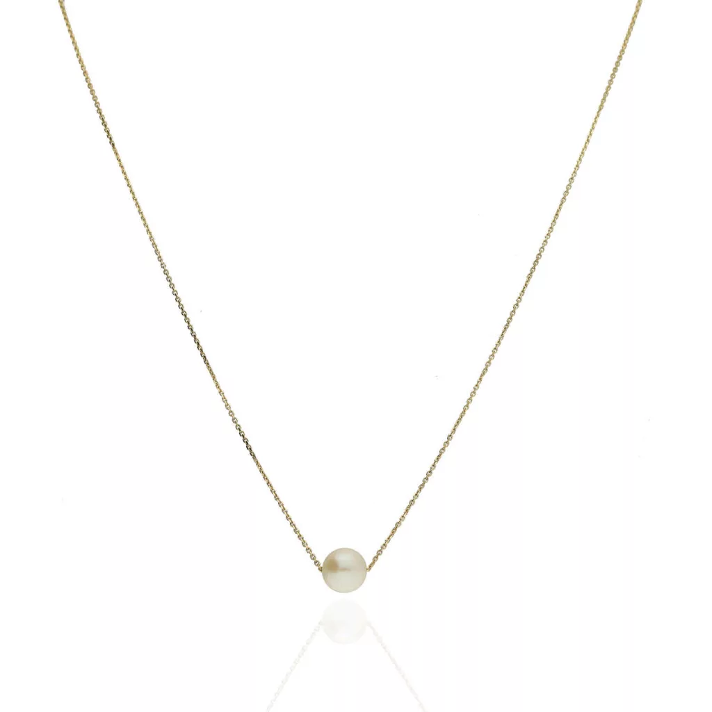 AU86047 - 14 karátos arany nyaklánc beépített gyöngy medállal Hossz: 42-46 cm