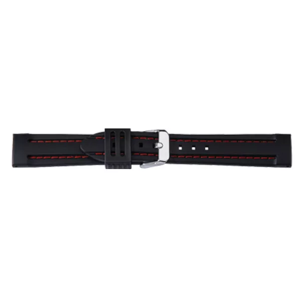 Bonflair fekete szilikon óraszíj piros varrással - 22 mm