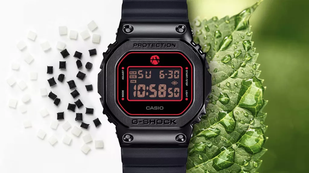 A bioalapú anyaghasználat a környezetterhelés csökkentését szolgálja, a G-SHOCK-tól megszokott tartósság megtartása mellett.