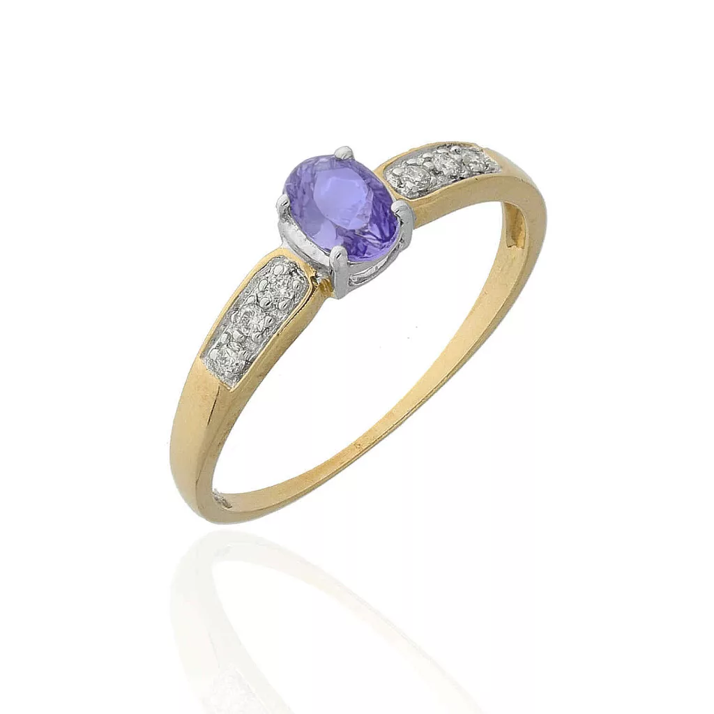 M784-TZ - 223339 - Briliáns kővel és tanzenit kőveldíszített női arany gyűrű Méret: 57